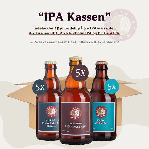 • 15 øl fordelt på Liselund IPA, Klintholm IPA & Farø Juicy IPA